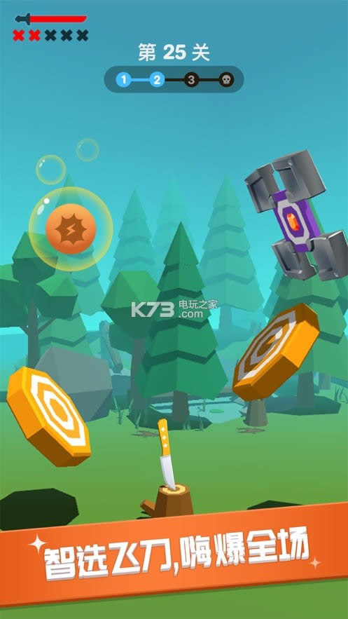点击上抛,长按屏幕瞄准发射。合成解锁你要的飞刀,射击各类型的靶,战胜更强的BOSS