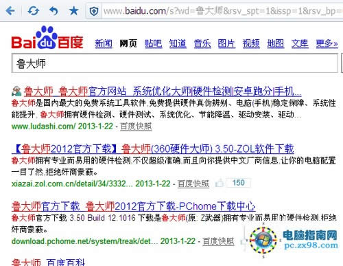 打开百度,搜索栏输入鲁大师.