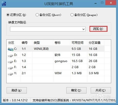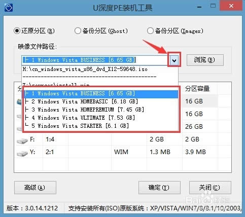 进入后会出现u深度pe装机工具,此时我们点击“浏览”,找到并选择U盘中原版vista镜像,然后点击“打开”,如图所示: