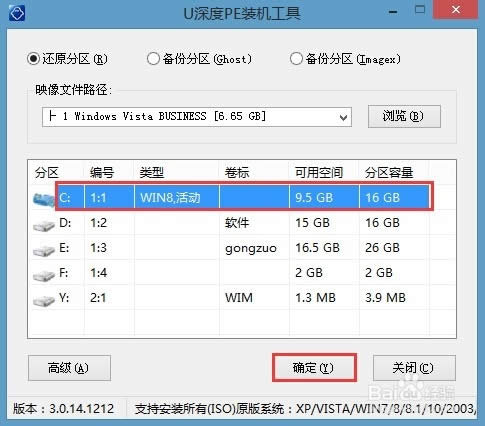 点击要安装的系统盘,然后点击下方的“确定”进行安装,以C盘为例,确定后还会弹出窗口,点击“确定”,如图所示: