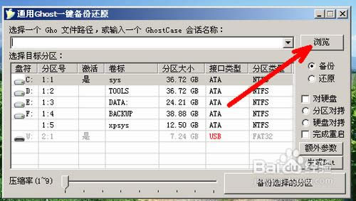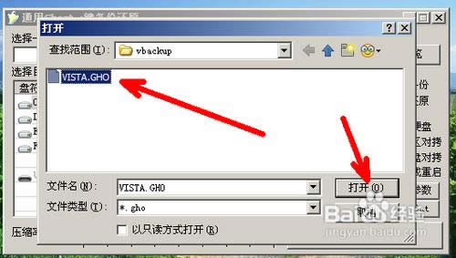 然后找到你的gho备份文件,这种文件一般就是gho版系统的系统文件,如果你以前做过系统备份,其备份文件格式就是ghost文件。点击右边浏览。