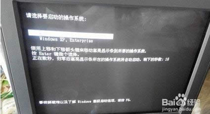9.重启计算机,我们就可以看见在开机界面,出现了双系统选择菜单,默认选择的是server2003系统启动