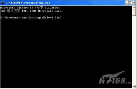 9. 点‘开始’,选择‘运行’,在‘运行’中输入‘cmd’,然后选择‘确定’,出现下列窗口: