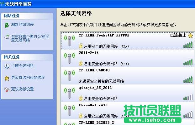 步骤7:重启完成,此时路由器的无线网络已经设置了无线安全,电脑的无线网络连接会自动断开,需要重新连接路由器的无线网络(本例中SSID为TP-LINK_PocketAP_FFFFFE),连接过程中需要输入路由器的无线PSK密码(本例为123456789),连接上之后,如下图所示。