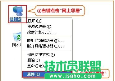 1、右击“网上邻居”——>点击“属性”