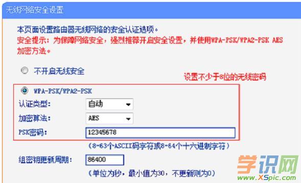 “PSK密码”,指的就是TL-WR886N的无线网络密码,建议用大写字母+小写字母+数字+符号组合来设置,且密码长度不得小于8位。