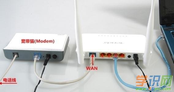 1、电话线上网:请准备2根较短的网线,一根网线用来连接ADSL Modem(猫)与路由器的WAN接口;另一根网线用来连接路由器上LAN(1、2、3、4)口中的一个与。