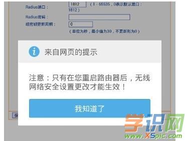此时提示需要重启路由器才能让设置生效,请点击我知道了。
