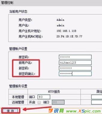 输入新的用户名和密码以后,最后不要忘记点击保存按钮。这样以后就需要用你设置的新用户名和密码登陆管理路由器的各种设置。