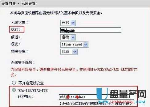 接着在出现的无线设置界面向导中,修改SSID,因为如果不修改这个SSID,如果周围的邻居也在使用有同样品牌的无线路由器,将无法分清哪一个是自己的无线路由器。所以可以在此界面中输入自己个性化的名字以区分无线路由器。当然还要在下面的无线安全选项中选择WPA-PSK/WPA2-PSK安全模式,并设置密码。其它的选项可以用缺省值。