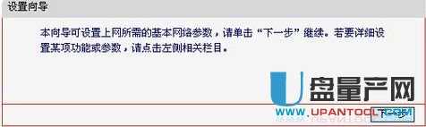 接着出现的画面是输入上网账号和上网口令,再点击下一步,以便于无线路由器在收到上网指令时能够自动拨号上网。