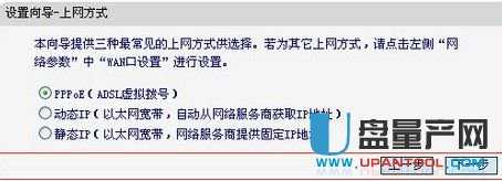 在接下来的界面中,选择你的上网方式,通常大家的上网方式都是pppoe虚拟拨号方式,这也是路由器中缺省的方式,然后点击下一步。