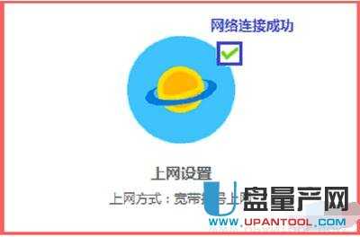 设置完成后,进入路由器管理界面,在“常用设置”——>“上网设置”中,如在上网设置图标上显示,即表示网络连接成功。