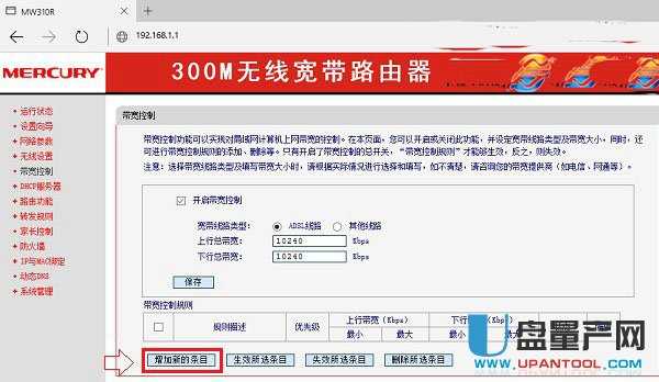 点击带宽控制规则下方的“增加新的条目”,在弹出的操作选项中。