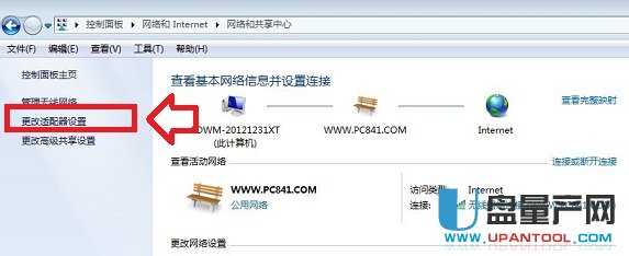 进入Win7网络共享中心之后,我们再点击左侧的“更改网络适配器”