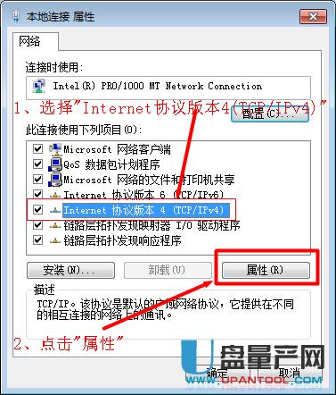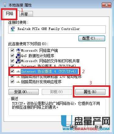 点击属性之后,就可以看到Win7本地连接设置界面了