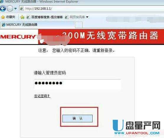 电脑必须连接上了mercury路由器的网络,然后在电脑中打开浏览器,键入Mercury无线路由器登录地址:192.168.1.1并打开,然后输入路由器管理员密码登录。