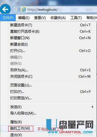 脱机状态:脱机状态下会影响正常浏览网页,点击浏览器 文件 >> 脱机工作,确保脱机工作前面勾选去掉。