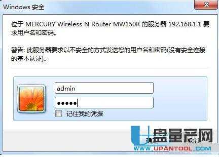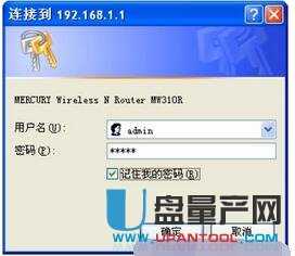 登录管理界面:打开电脑上的浏览器,然后在地址栏输入“http://192.168.1.1”并按下回车键,在弹出的对话框中输入用户名和密码(二者出厂默认都是admin),并点击“确定”按钮,就可以登录到Mercury路由器的管理设置界面了。