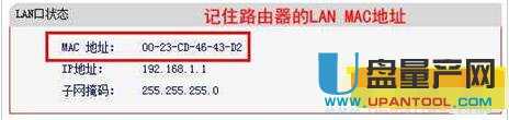 首先分别登录两台路由器获取路由器LAN口的MAC地址并记录下来。方法:登录路由器在运行状态中的“LAN口状态”中获取。未设置桥接前如果用无线登录时可能有冲突只能登录一个,建议可以用有线设置,也可以给路由器分别断电用无线设置。