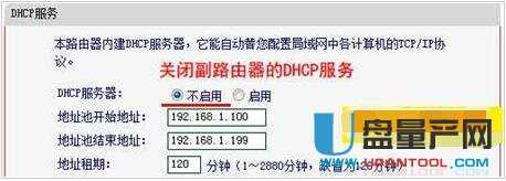 副路由器:DHCP服务 选择关闭,一个网络中最好只有一个DHCP服务器。