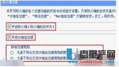 开启IP地址过滤功能时,必须要开启防火墙总开关,并明确IP地址过滤的缺省过滤规则。