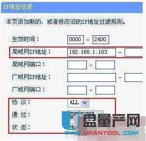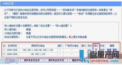 因默认规则为禁止不符合IP过滤规则的数据包通过路由器,所以内网电脑IP地址段:192.168.1.100-192.168.1.102不需要进行添加,默认禁止其通过。