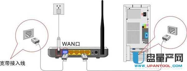 WAN口连接宽带进线即网络公、LAN口连接局域网内的电脑。