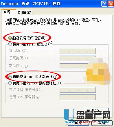 在“Intelnet 协议(TCP/IP) 属性”页面,选中“自动获取IP地址”后点击确定即可