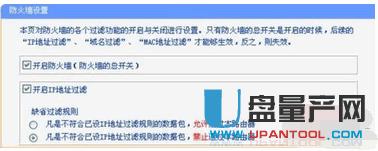 开启IP地址过滤功能时,必须要开启防火墙总开关,并明确IP地址过滤的缺省过滤规则(设置过程中若有不明确处,可点击当前页面的“帮助”按钮查看帮助信息):