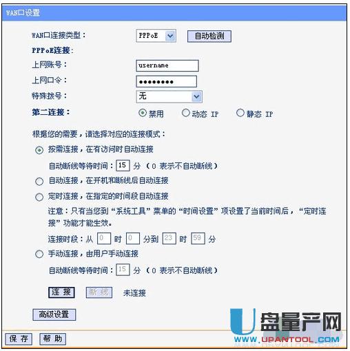 在“WAN口设置”界面中,用户可以对广域网进行更为精准的设置调整。先进行“WAN口连接类型”的选择,在这里用户会看到更多的上网方式。对于这款TP Link无线路由器可点击“自动检测”对网络模式进行智能侦测,非常方便。