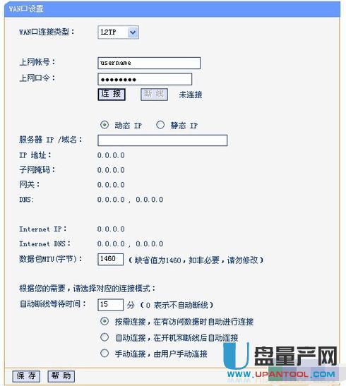 在对L2TP或PPTP上网方式进行设置时,上网帐号、上网口令需正确填入ISP提供的帐号和口令,可根据ISP提供的动态IP、静态IP按需设置IP,服务器IP/域名需正确填入ISP为你提供的IP地址或域名。除此而外,还可按需选择自动断线等待时间、按需连接、自动连接、手动连接等上网方式,完成更改后,点击保存按钮即可。