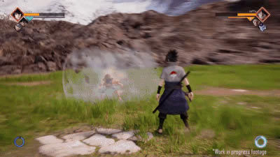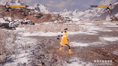 游戏原创招式,变身为六道模式后给予对方一记重拳,并将其击飞。