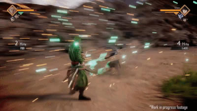 让自身像离弦之箭般飞射而出后,对手手上的三把刀缠绕上武装色霸气,将硬化的力量传导到刀刃上,让三刀瞬间黑化,便会在瞬间化作无坚不摧的毁灭之刃攻向对手,于眼中绽放出天下无双的寒光之瞬间,索隆便一招就将巨大的岩像拦腰斩断!!!