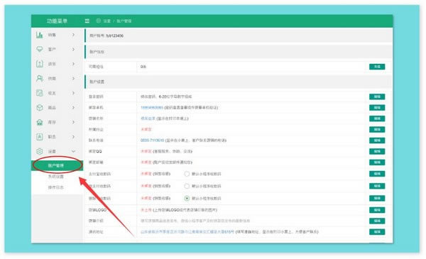 5、账户管理-账户资料是单据打印组成部门及使用小程序的必备信息
