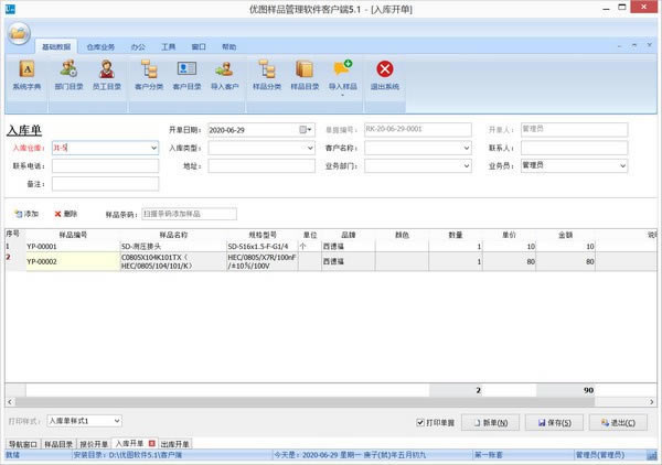 优图样品管理软件是一款通用的样品信息管理软件,主要功能包括样品管理、员工管理 、客户管理、仓库管理,同时还包括内部消息、Excel数据导入导出等功能。