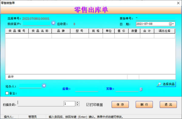 货品销售管理模块: 货品零售,批发录入管理。