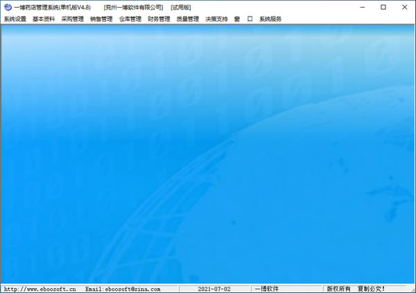 一博药店管理系统是一款全面面向医药行业、通用性极强的进、销、存、财务一体化专业管理系统, 包含系统管理、基础信息、采购管理、销售管理、仓库管理、财务管理、质量管理、决策支持、帮助等子系统。软件吸取市场流行医药进销存管理软件精华,真正地从用户需求出发,为中、小型医药零售企业、零售药店、药房等量身打造。软件本着全面提升医药企业自动化管理水平,优化业务流程,严格控制采购、销售、仓储、财务、决策各环节的原则,使物流、资金流流向清晰,为经营决策提供可靠依据。人性化的设计理念,界面简洁、明快、直观,是您企业进行信息化管理的强大工具。