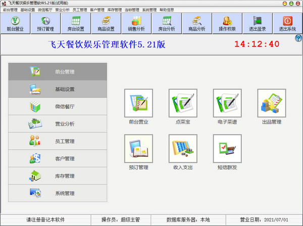 飞天餐饮娱乐管理软件是一款用来对餐饮行业进行管理的工具,有强大的功能支持,对于餐饮的管理也会更加轻松一些,适用于各大餐厅、酒楼以及饭店等餐饮企业。