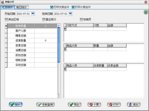 4. 营业分析:包括销售分析、房台分析、商品分析、提成分析和单据查询