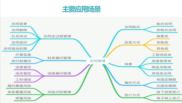 友为合同管理系统以流程监控为基础,从风险管理的视角对合同管理进行的分析,形成合同管理的 5 大功能模块,并最终落实对合同管理各环节的管控。