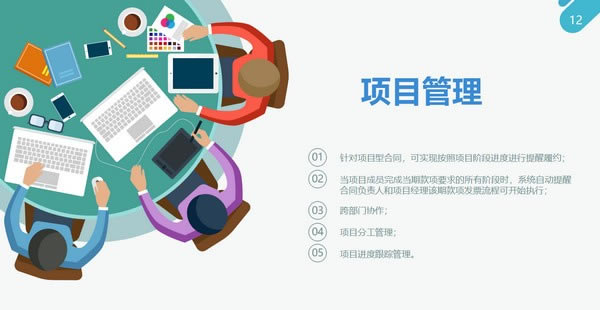 8.管统计分析:多维护的统计报表,如按部门统计、按合同类型、按客户类型等。