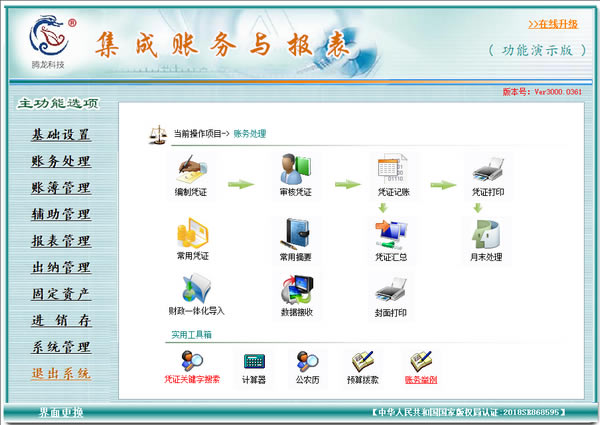 腾龙集成账务与报表是一款简易财务管理软件,用于财务管理人员对各项财务收支进行处理,帮助财务人员更好的管理公司各项的财务事项。那么有需要这款软件的朋友们,可以下载下来使用试试。