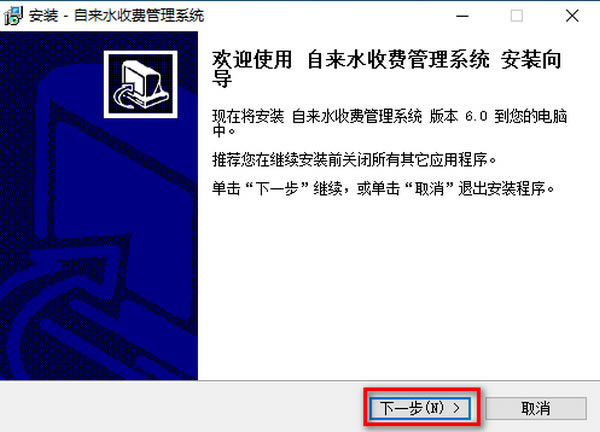 1、双击应用程序“自来水收费管理系统-setup.exe”,进行安装