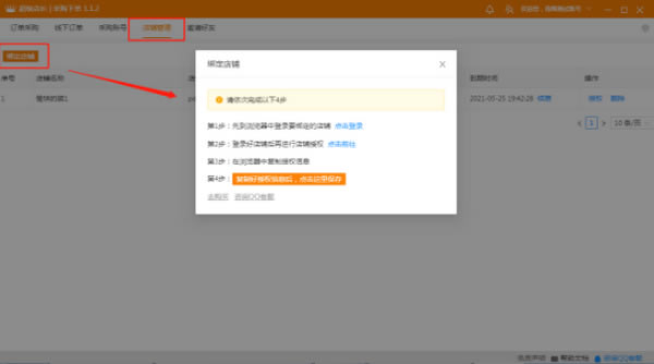2.进入店铺授权页,点击【绑定店铺】,然后按照弹窗中的提示依次操作