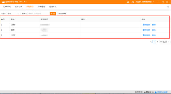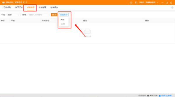 1.进入采购账号页面,点击添加账号-淘宝或1688(教程中我们以1688为例)