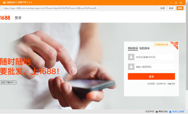 2.在打开的窗口中登陆您的淘宝账号或1688账号