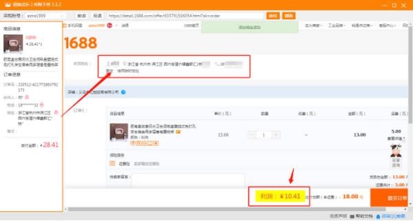 9.在采购窗口中,拼多多订单信息会展示在左侧,右侧是货源详情页