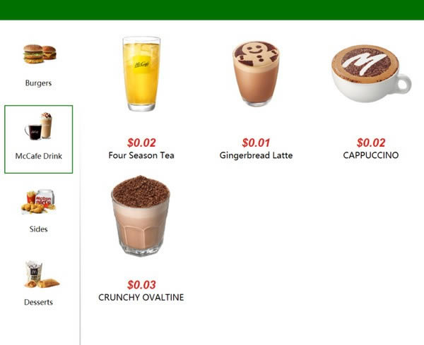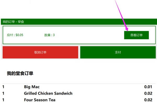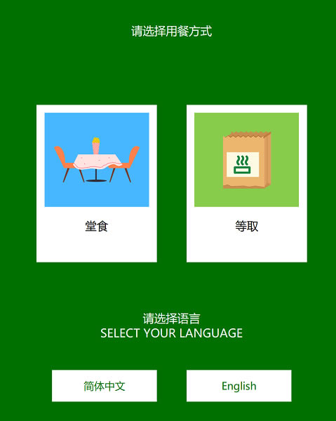 1、启动kiosk,选择就餐方式,进入点单页,点餐——查看订单——支付,选择对应的支付方式下单
