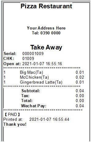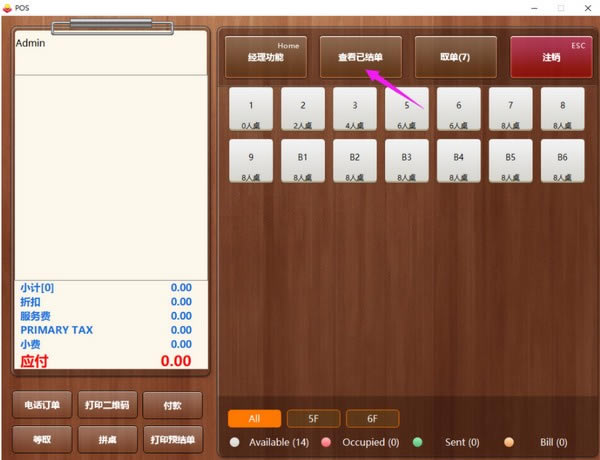 3、如客人在kiosk下单,通过微信,支付宝或其他支付方式即时结账,订单直接送厨,可在收银已结单查看到订单,如下